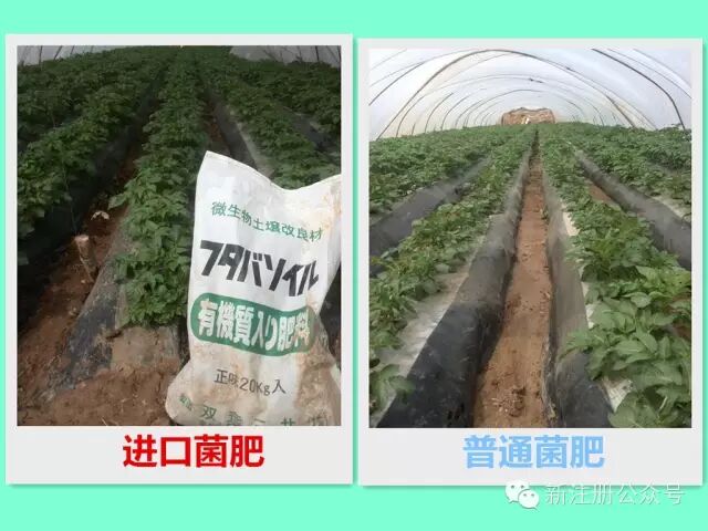 使用效果 适用所有作物,尤其适合在蔬菜、果树、花卉、地下块茎等经济作物上使用。 具体用量及用法详询当地经销商。 下面是在滕州地区土豆上的使用效果: 2015年4月6日在滕州市张汪镇进行土豆测产:拱棚土豆,一个棚3.5亩,20行,每行158米,用进口菌肥8袋,对照棚为普通菌肥。4月6日测产,用进口菌肥棚随机取4个点(红色),普通菌肥棚取3个点(蓝色),数据如下: 综上数据:使用进口菌肥每米平均产量5.235斤,亩产量4726.46斤,商品果比例87.6%。对照棚每米平均产量4.856斤,亩产量4383.87斤,商品果比例85.58%。亩增产342.59斤,4月6日当天市场价格2.6元/斤,合计每亩增收890.7元。
