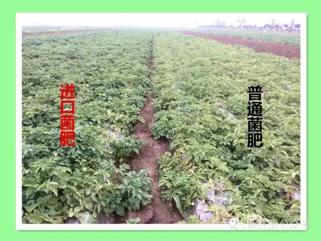 前期受冻害对比:使用进口菌肥土豆出苗齐,苗壮,无大小苗现象。