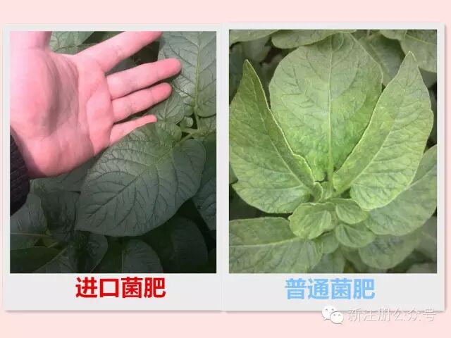 土豆收获前半个月对比:使用进口菌肥叶片扔保持绿色,不早衰。